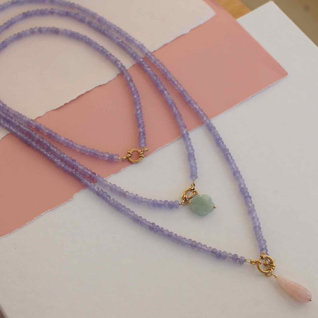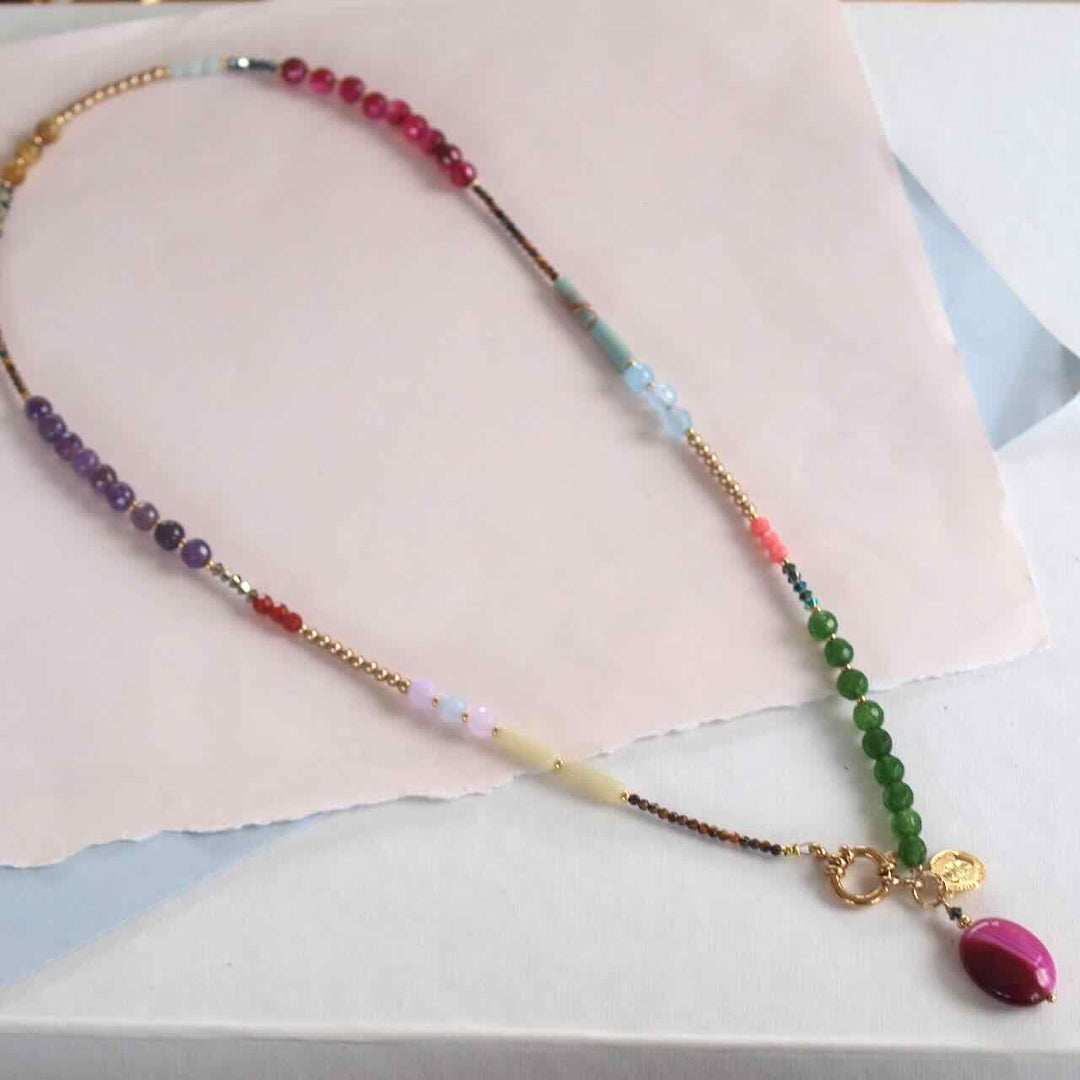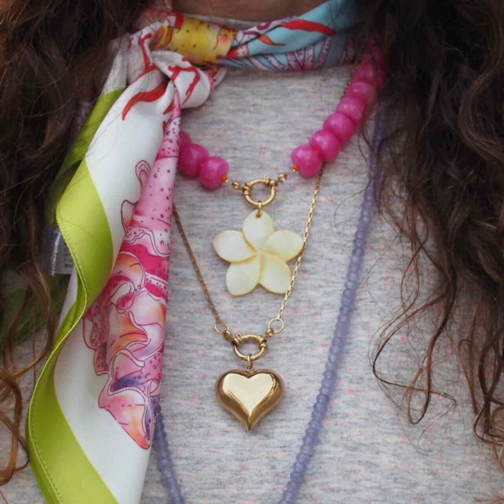 Leuke ketting in mooi felle fuchsia, heb er twee bedels bij, staat erg tof.
