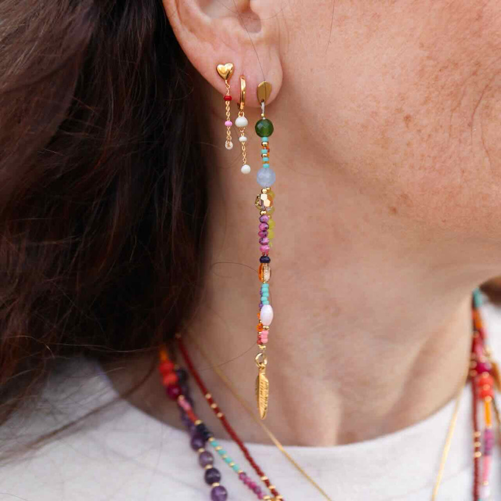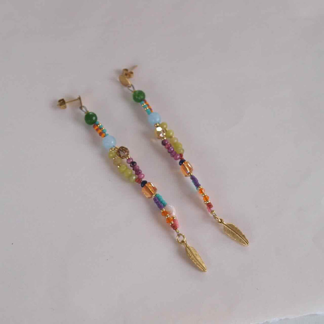 De oorbellen zijn echt mijn stijl: beetje hippie-achtig. Mooie lengte van 6 cm. En de kleuren zijn om vrolijk van te worden.