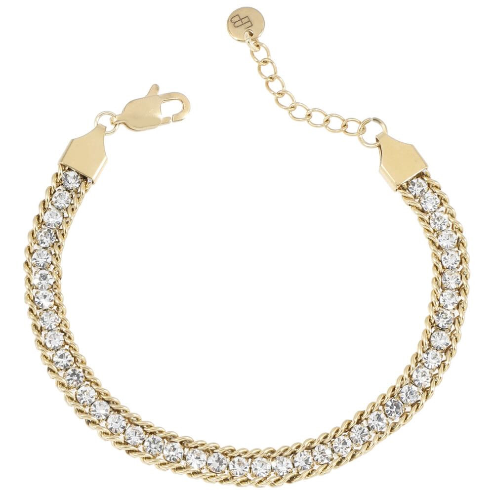 Armband van Ellen Beekmans verguld op longlasting stainless steel met strass steentjes. Lengte: 17+3 cm.