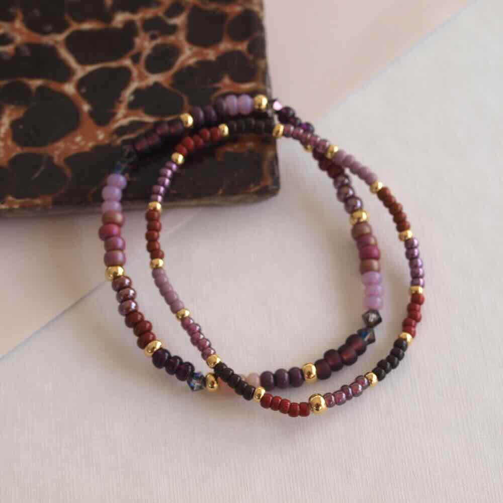Armband lots of purple geregen op elastiek met rocailles en miyuki kralen in mooie paars en bordeaux kleuren. Lengte: 18 cm, de armband lots of brown is geregen met paarsrood en iets bruin. De armband more lots of brown is geregen met rocailles in 6/0 in paars, oudroze, bordeaux en met kristallen kraaltjes. De armbanden zijn ook leuk om bij elkaar te dragen.
