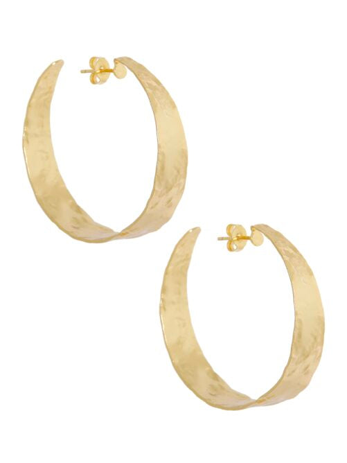 De oorbellen van Ellen Beekmans hebben een gehamerde structuur. De basis van de oorbel is van brass met een sterke goudplating. Lengte: 4 cm.