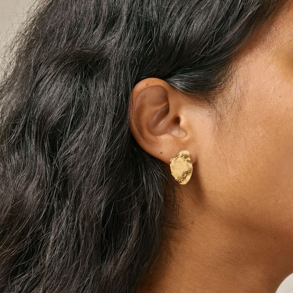Prachtige oorstekers van Enamel copenhagen. De oorbellen zijn gemaakt van 925 sterling zilver en verguld 18k goud. Grootte: 20 bij 14mm. Stijlvolle oorbellen met een mooie structuur.