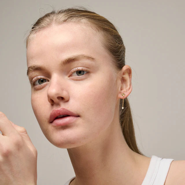 Oorbellen van Enamel copenhagen zijn 18k goud verguld. De oorbellen hebben gouden zonnebloemzon oorstekers met een emaille balletje er aan. Zo stijlvol en verfijnd zijn deze oorbellen. Lengte: 2,6 cm