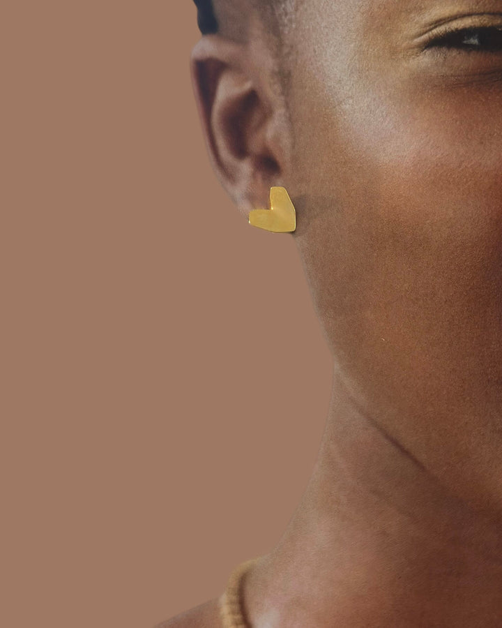 De oorbellen van Ellen Beekmans als twee leuke hartjes. Ze zijn goldplated op longlasting stainless steel. Lengte: 1,2 x 1,2cm.