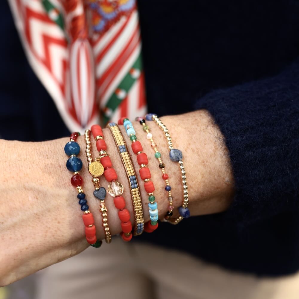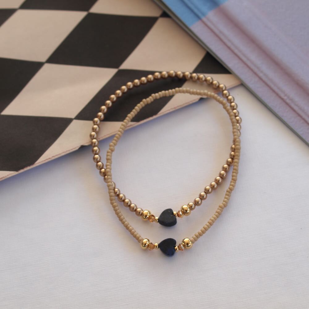 Armbandje geregen op elastiek met een klein natuurstenen hartje in het midden. Ga je voor het armbandje met de miyuki kraaltjes, lengte 17 cm of kies je de armband met de gouden parels, 17.5 cm. Wil je graag een andere maat, stuur ons dan een berichtje. We hebben nu een leuke actie, koop je 2 petite heart armbandjes, dan krijg je er 1 voor de helft van de prijs.