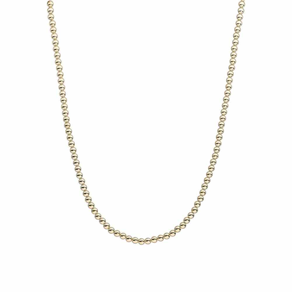 De Sparkling jewels kralen ketting 4 mm goud kleurig staat voor tijdloze elegantie met een warme twist. Perfect lichtgewicht draagcomfort voor dagelijks gebruik, maar ook geschikt voor avondlooks. Combineer de ketting met een subtiele pendant of draag haar alleen, een prachtig sieraad voor je sieradencollectie. De kralen blijven prachtig en de ketting heeft een verguld slotje. Lengte: 42-44cm