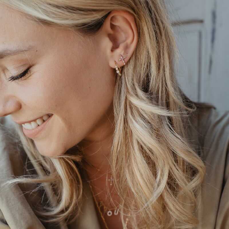 Mooie creolen met oorstekers van une a une met kristallen steentjes.