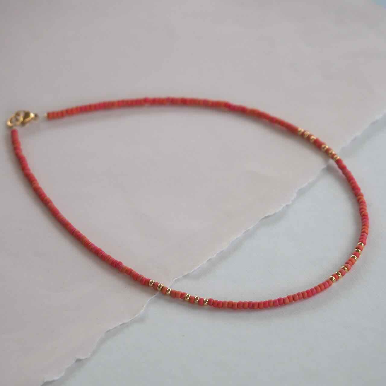 Widaro ketting matte red vermillion is geregen met miyuki kralen en een aantal goud vergulde rocailles. De ketting heeft een roestvrijstalen sluiting. Een ketting die je kort in de hals kunt dragen in een mooie koraalkleur. Lengte: 42 cm, wil je graag een andere lengte mail ons of stel je vraag hieronder. Ook heel leuk om te combineren met de ketting peach in 60cm.