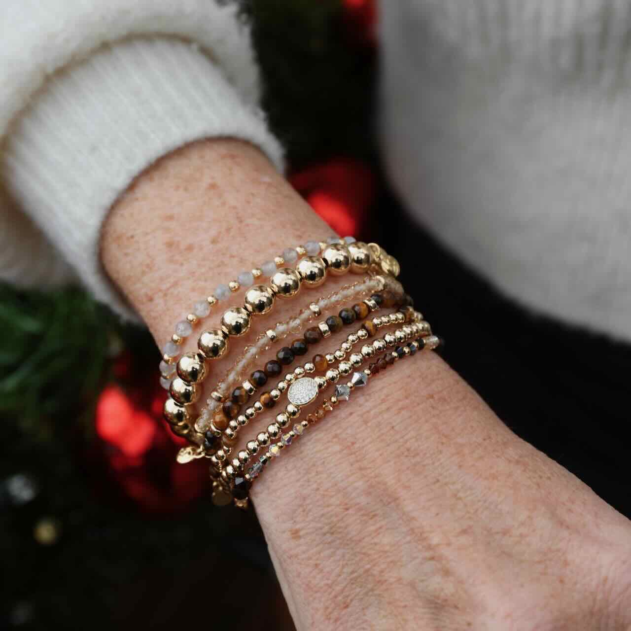 Armband pretty color sparkle is geregen op elastiek met swarovski kristallen kralen en 24k vergulde rocailles. De armband heeft de mooie kleuren, donkerbruin, antraciet, zwart, beige en goud. Lengte: 17.5 cm, wil je graag een andere lengte stel je vraag hieronder of mail ons. Een stijlvolle en tijdloze armband die je prachtig kunt combineren met de ketting pretty naturel sparkle.