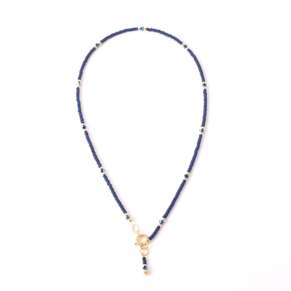 Een ketting uit de Widaro collectie geregen met rocailles en mooie kristallen kraaltjes met goud ertussenin. De ketting heeft een roestvrijstalen sluiting en is 49 cm. Wil je de ketting graag in het zilver, stel je vraag hieronder.