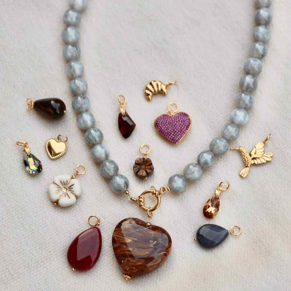 Ketting big grey sparkle is geregen met 12mm resin kralen en heeft een glitter in de kraal. De ketting is niet zwaar en heeft een mooie roestvrijstalen sluiting. Je kunt kiezen uit een gouden of zilveren boeislot. De ketting kun je met de sluiting naar voren dragen en er nog mooie bedels aan hangen. De ketting is ook iets langer, lengte 51 cm. Wil je graag een andere lengte stuur ons dan een mail of stel je vraag hieronder. Combineer met dezelfde armband.