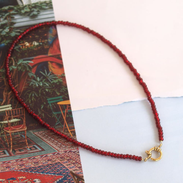 Kettingen uit de widaro collectie geregen met 6/0 rocailles in twee mooie kleuren, de bordeaux shiny purple en de silverlined red. De kettingen hebben een gouden of zilveren roestvrijstalen sluiting. Draag de sluiting naar voren en kies nog leuke bedels voor aan je ketting. Lengte:44 cm, wil je graag een andere lengte, stel je vraag hieronder of mail ons.