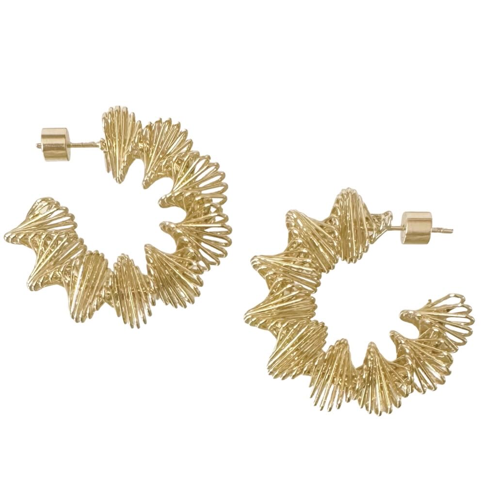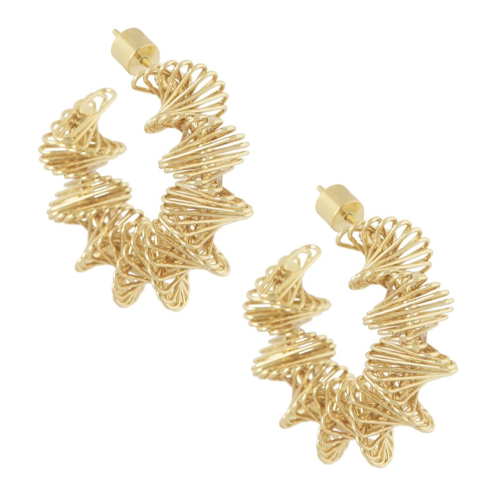 Oorbellen van Ellen Beekmans in een geometrische vorm. De oorbellen zijn verguld op longlasting stainless steel. Lengte: 3,5cm.